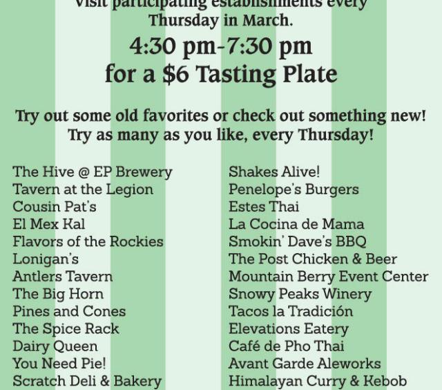 Thursdays in March, 4:30–7:30 p.m., $6 tasting plate at participating restaurants!