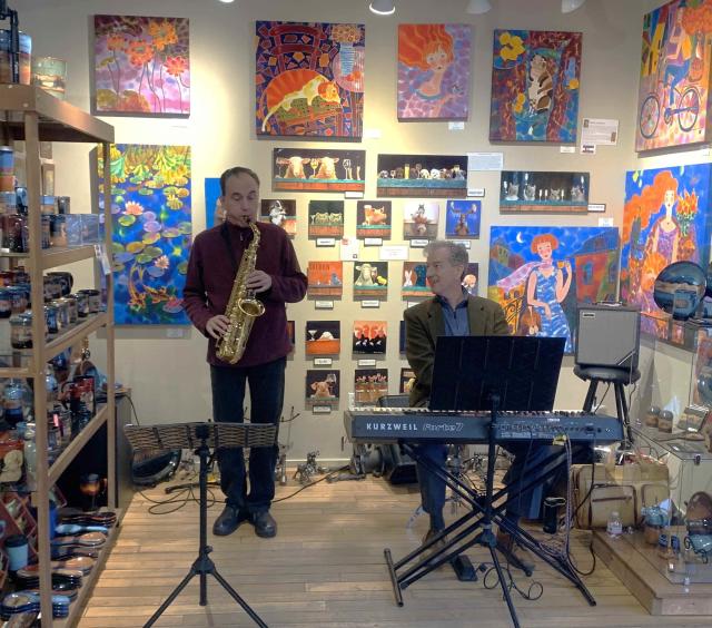 FREE - Live Jazz concert with Max Wagner (Jazz Sax & Vocals) & Stu MacAskie (Keyboard) plus enjoy seeing beautiful, handcrafted artwork. Check out our newest art demos and show openings. There is always a wonderful exhibit of fine art for sale at our gallery. We feature some of the newest work from many Colorado painters.