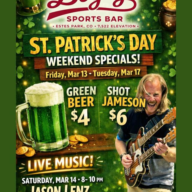 Bogey’s Sports Bar is a full-service sports bar in Estes Park, Colorado, offering a relaxed, energetic spot to watch the game, enjoy great drinks, and soak up mountain-town vibes. Located just steps from downtown Estes Park and across from the Big Thompson River, Bogey’s is an easy walk from local shops, hotels, and attractions near Rocky Mountain National Park.